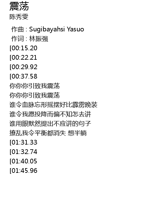| [02:41.82][01:32.74] | 你你你引致我震荡 |