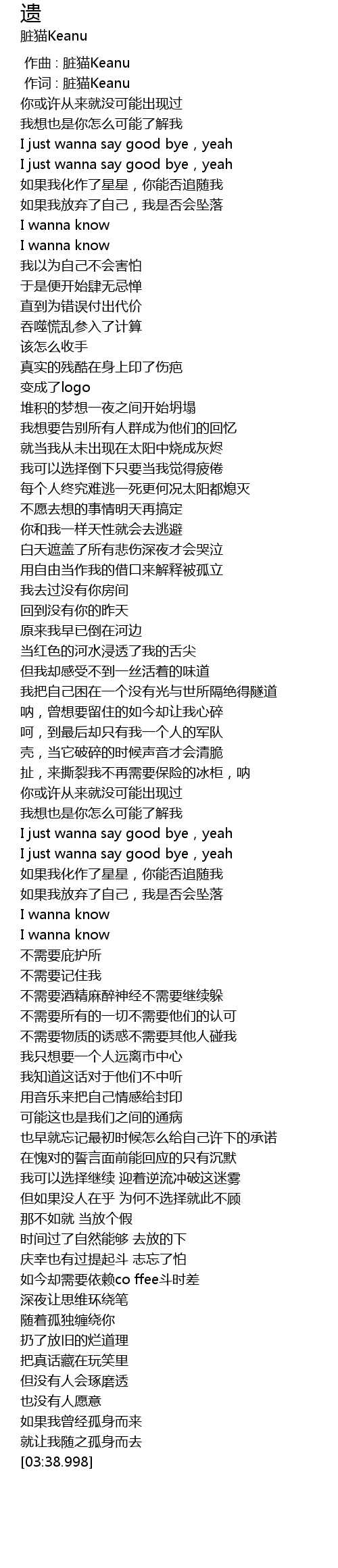 | [00:01.000] | 作词 : 脏猫Keanu |
