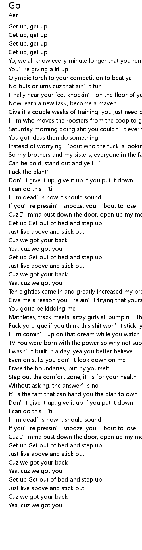 | Cuz I’mma bust down the door, open up my mouth and start yellin’ to ya | |