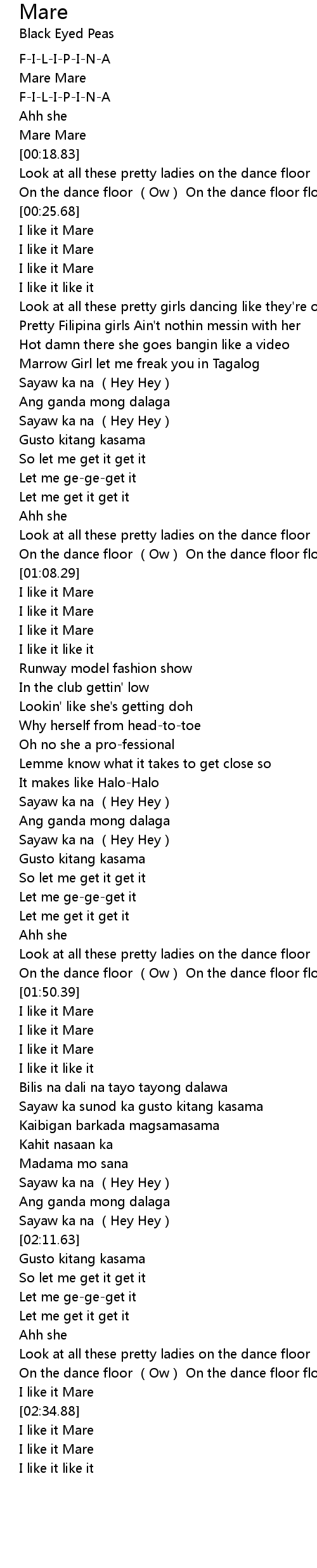 | [02:10.45] | Sayaw ka na Hey Hey |