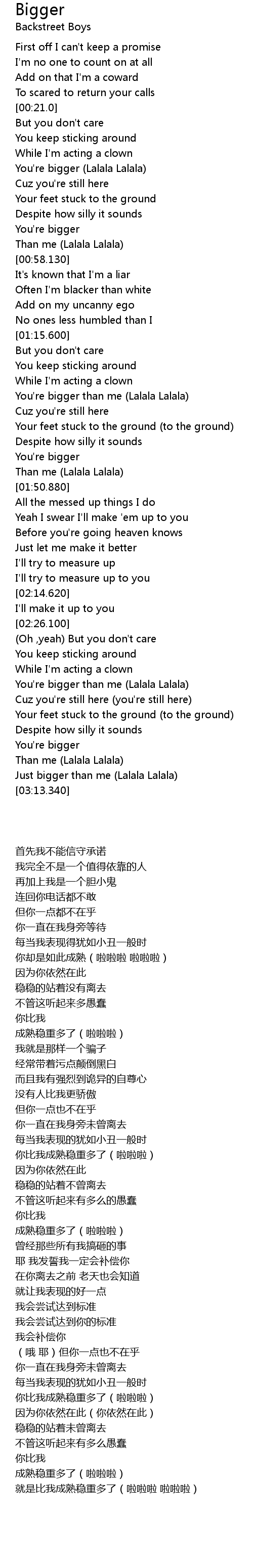 | [00:33.830] | You're bigger (Lalala Lalala) |