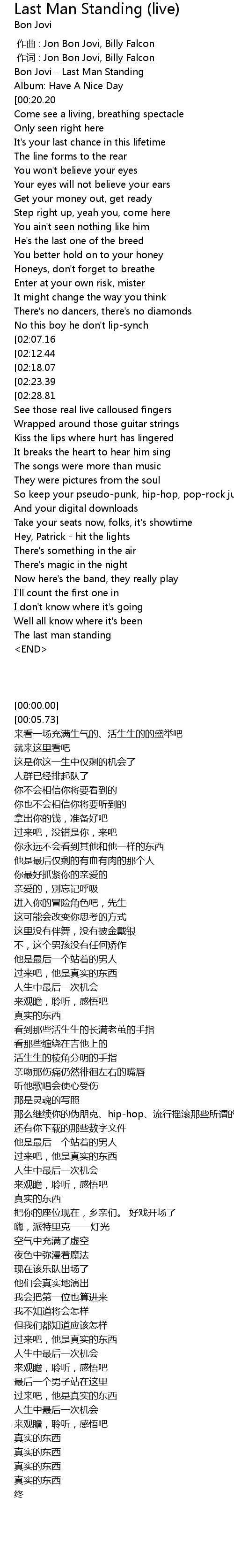 | [00:00.00] | Bon Jovi - Last Man Standing |