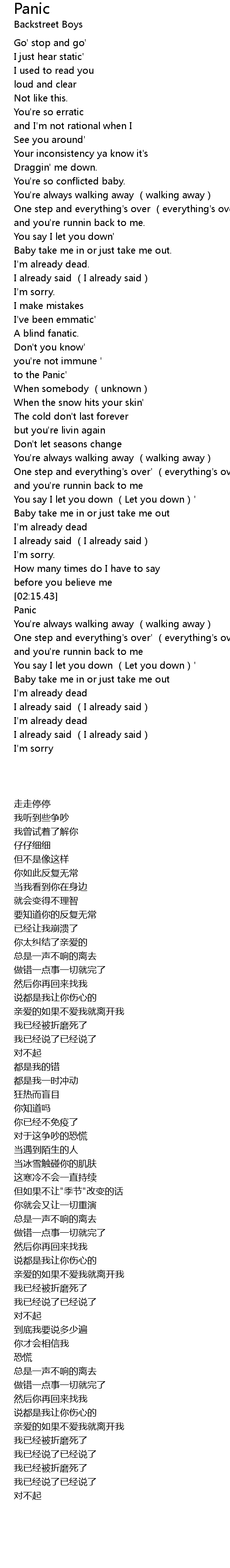 | [02:19.96] | Panic |
