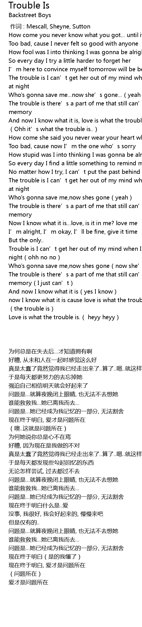 | 歌曲 | Trouble Is |