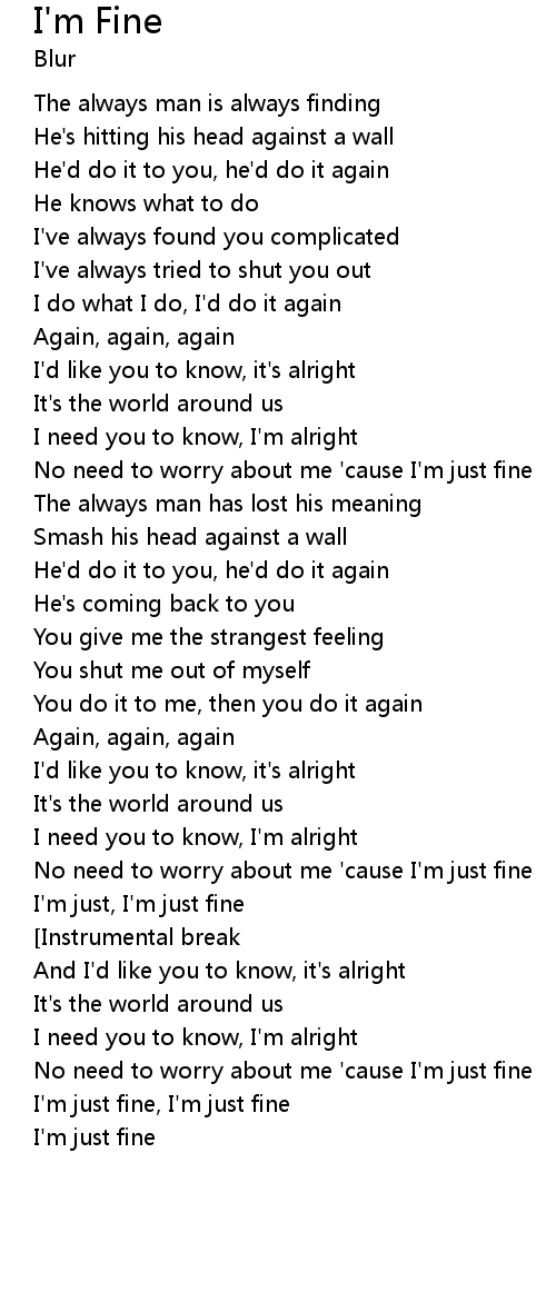 I'm just fine, I'm just fine |