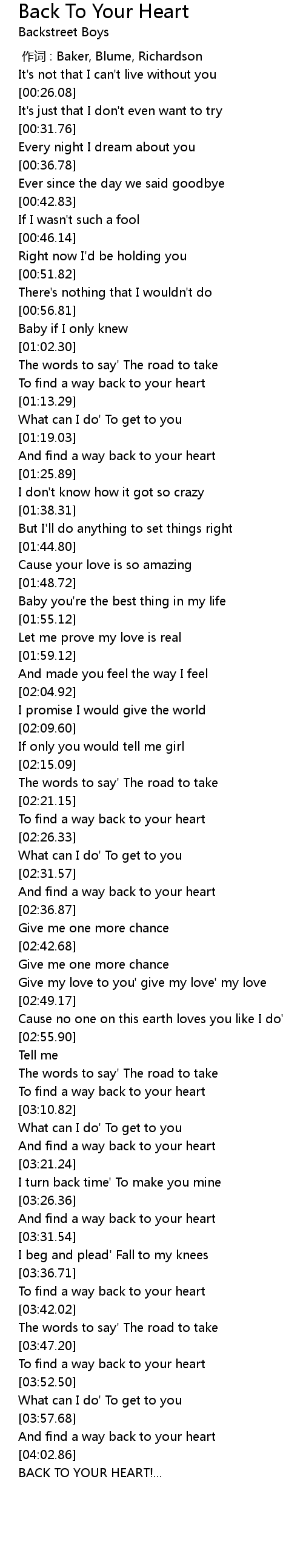 | [04:11.91] | BACK TO YOUR HEART!... |