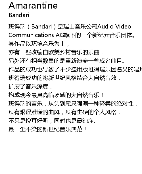 | [00:16.00] | 班得瑞(Bandari)是瑞士音乐公司Audio Video |