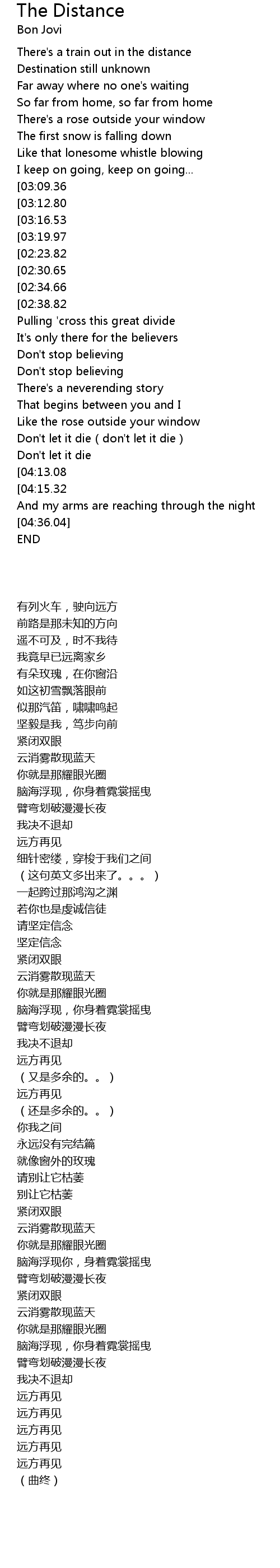 | [04:18.44][04:13.08][04:07.92][04:02.66][03:55.49] | I' ll go the distance |
