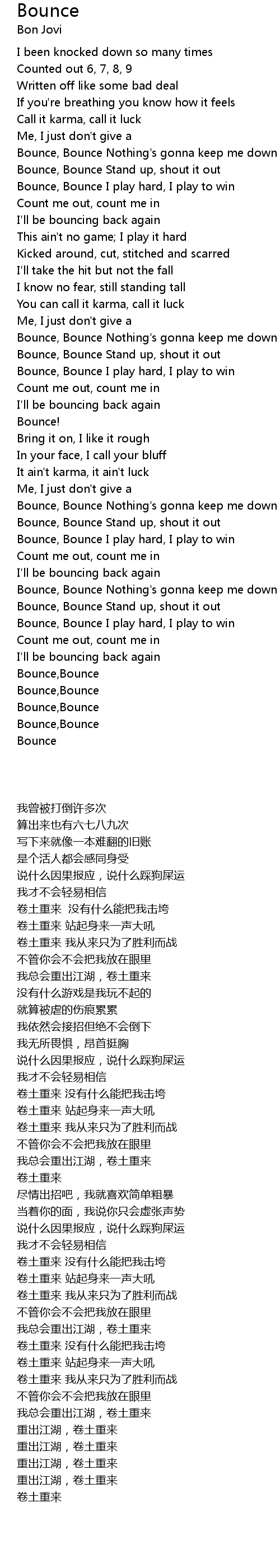 Bounce, Bounce Nothing's gonna keep me down |