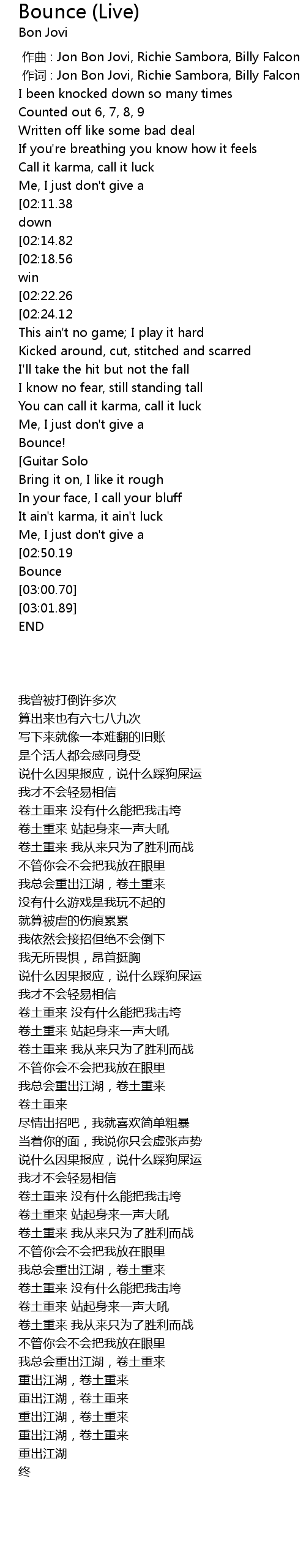 | [02:53.89][02:50.19][02:46.57][02:42.69] | Bounce, Bounce |