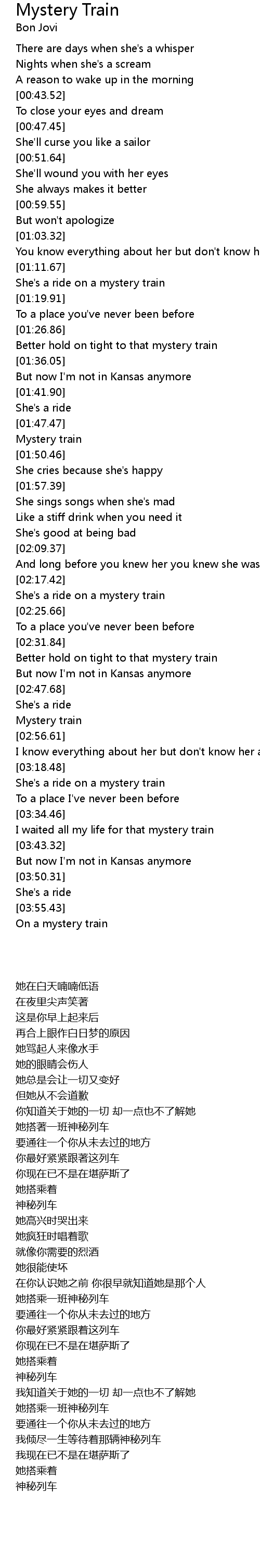 I waited all my life for that mystery train |