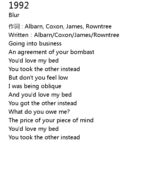| 作词 : Albarn, Coxon, James, Rowntree | |