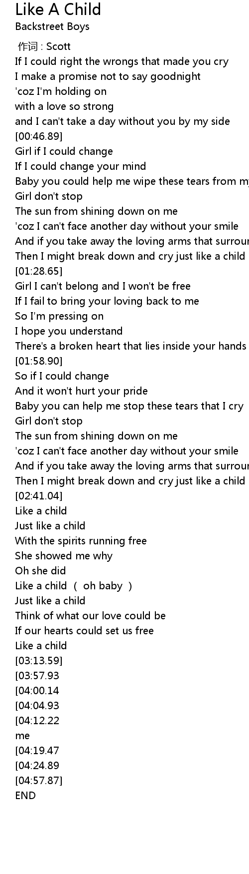 | [04:48.42][04:19.47][03:50.69] | Then I might break down and cry just like a child |