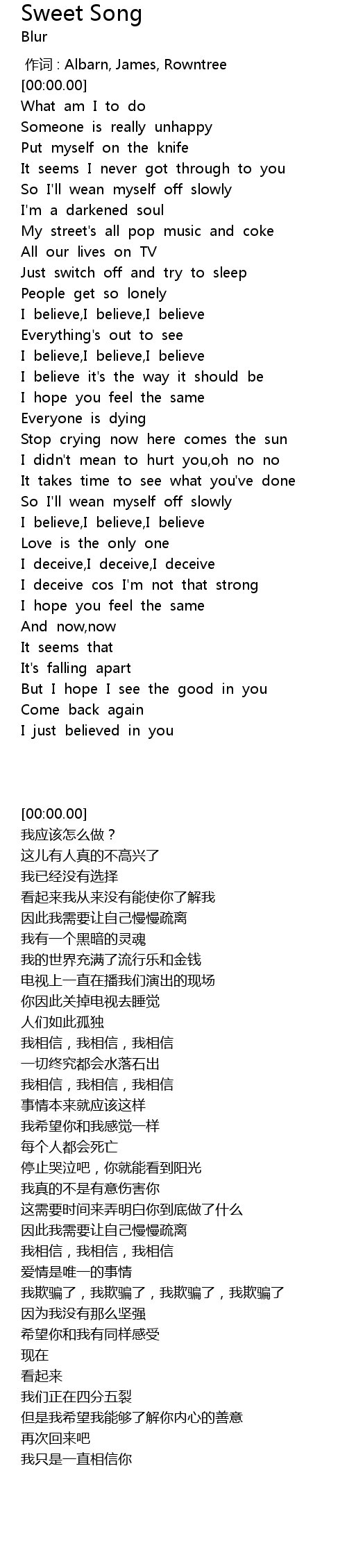 | [00:00.00] | zuo ci : Albarn, James, Rowntree |