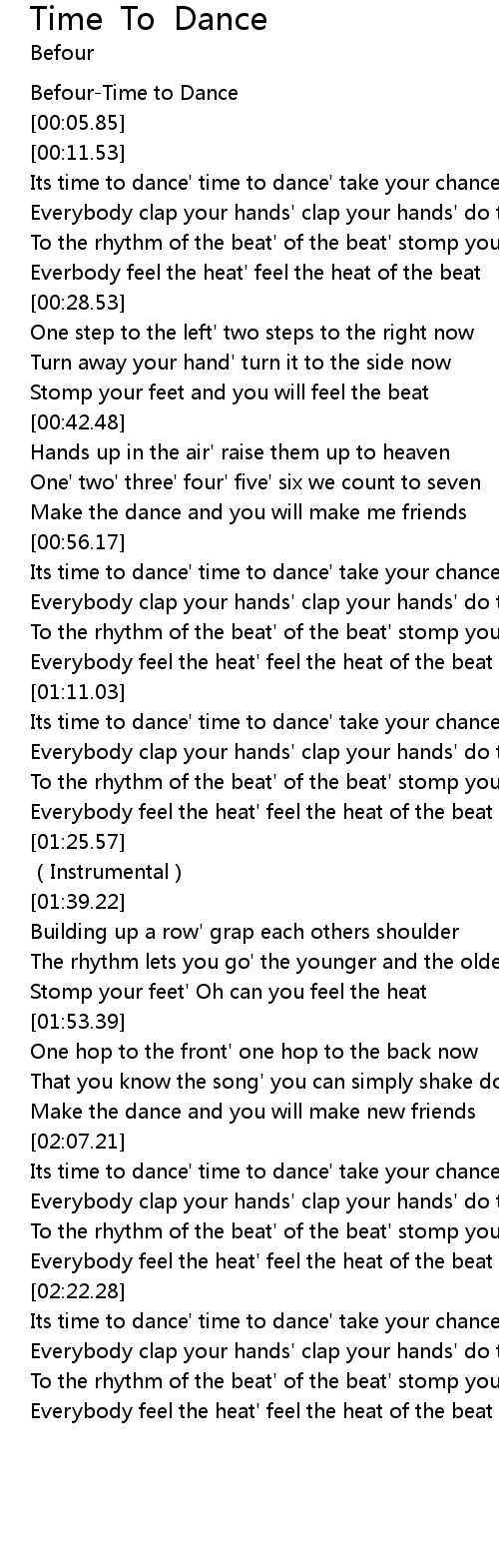| [00:57.16] | Its time to dance' time to dance' take your chance |