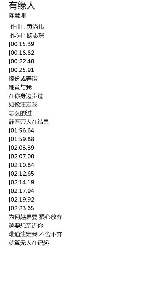 | [02:40.12][01:56.64][00:44.09] | 谁在昨天经过的 突然遇上了我 |