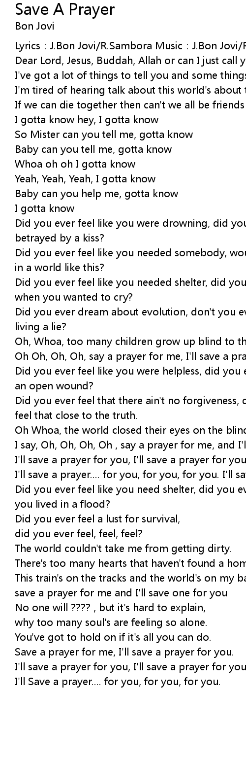 | Oh Oh, Oh, Oh, say a prayer for me, I'll save a prayer for you. | |