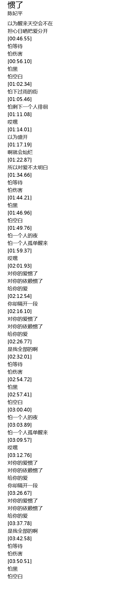 | [01:54.01] | pà yí ge rén gū dān xǐng lái |