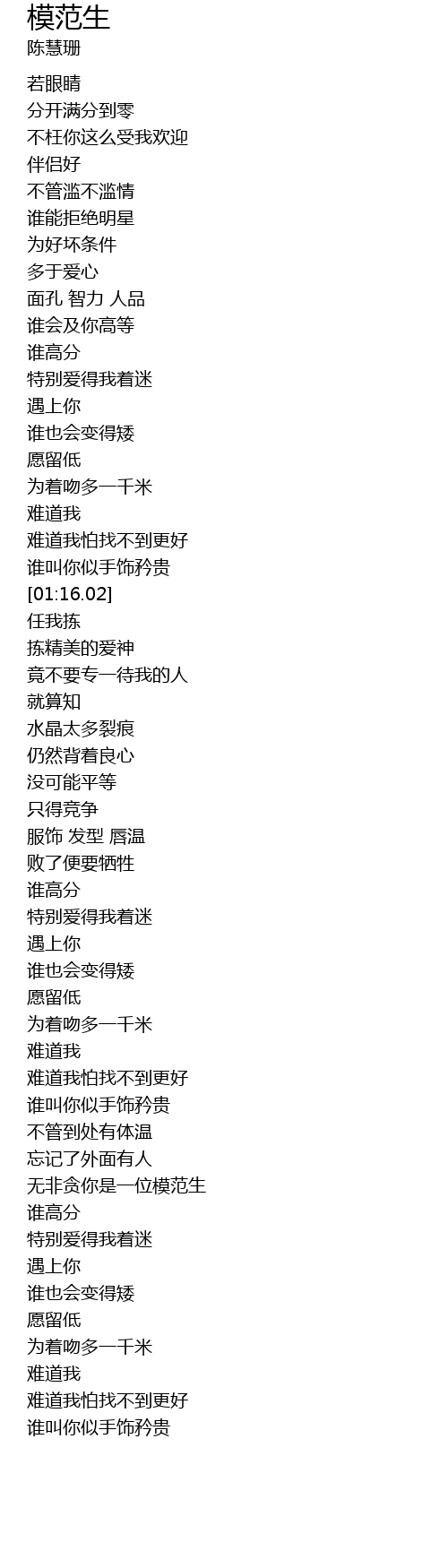 | [02:25.26] | 无非贪你是一位模范生 |