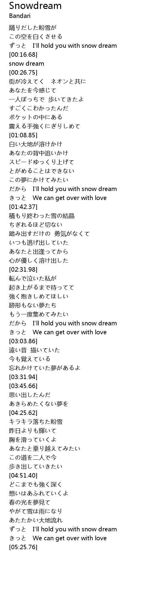 | [00:09.69] | ずっと I'll hold you with snow dream |