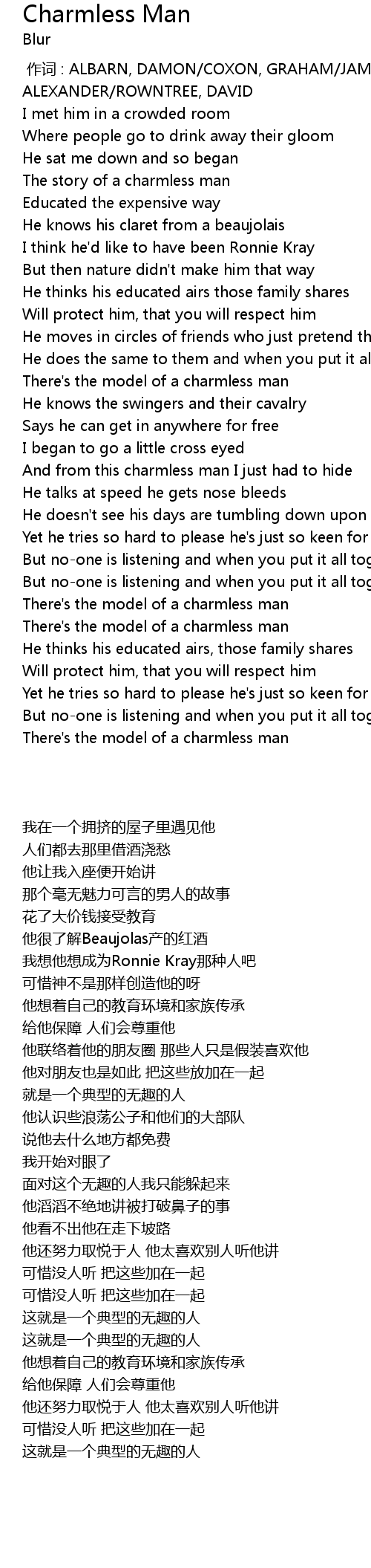 | 歌曲 | Charmless Man |