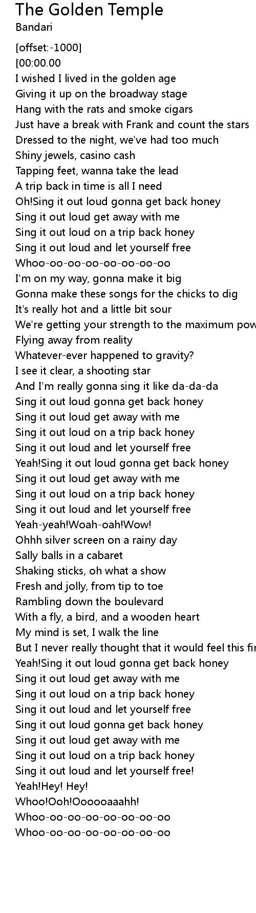 [01:34.84] Yeah!Sing it out loud gonna get back honey