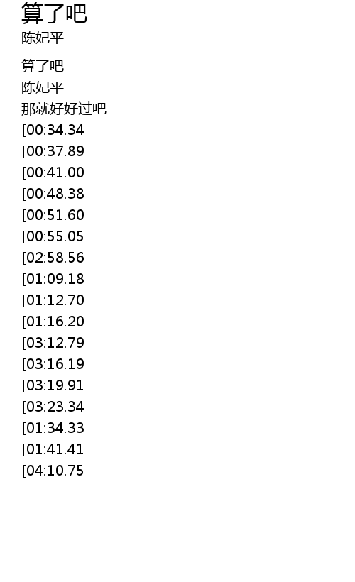| [03:41.06][03:12.79][01:19.68] | hai shi jiu zhe yang suan le ba |