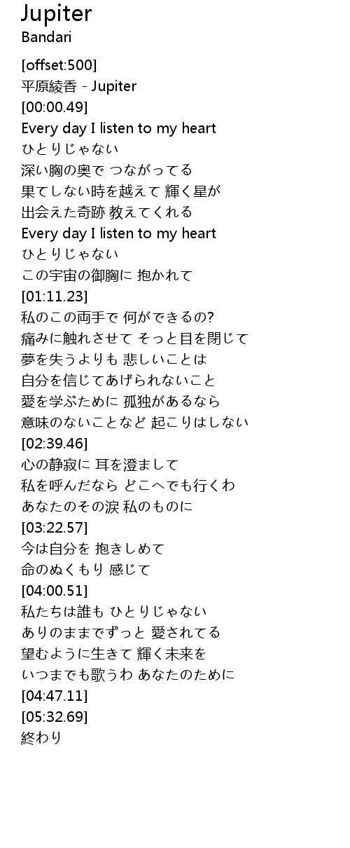 | [00:57.73] | この宇宙の御胸に 抱かれて |