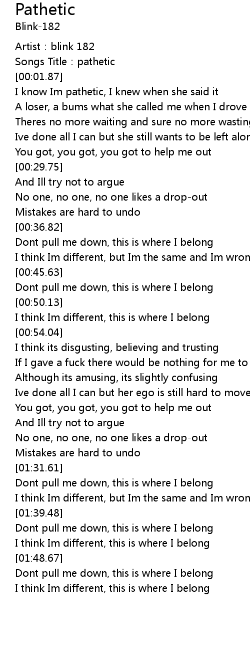 | [00:37.94] | Dont pull me down, this is where I belong |