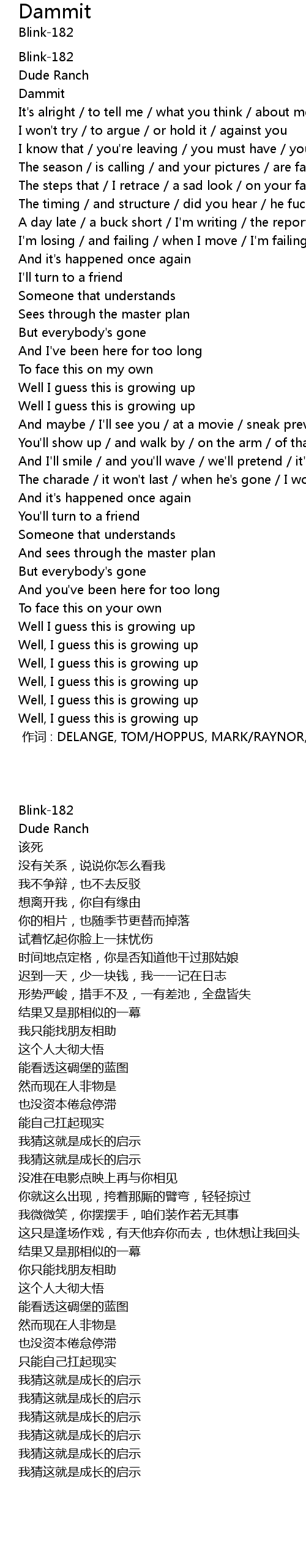 | 歌曲 | Dammit |