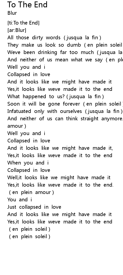 | [00:37.65] | Weve been drinking far too much jusqua la fin |