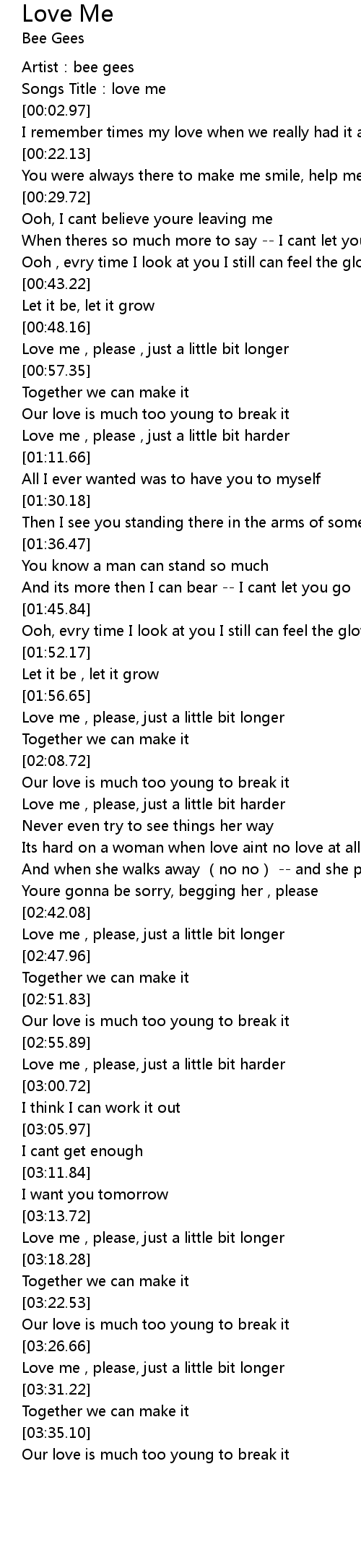 | [03:14.35] | Love me , please, just a little bit longer |