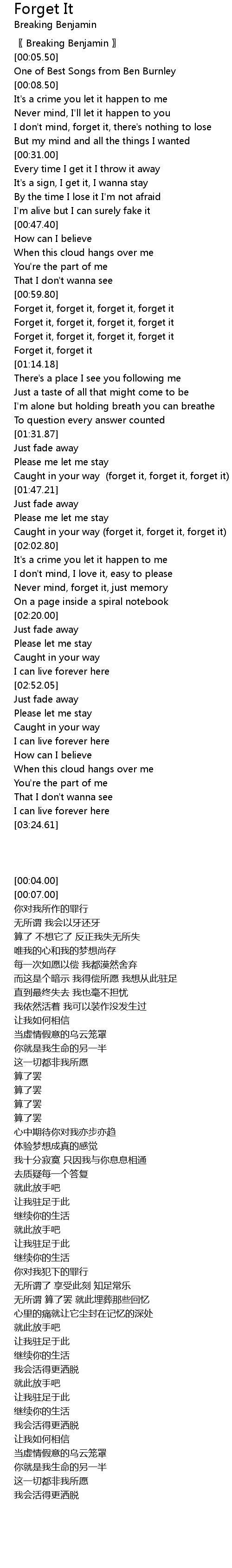 | [01:00.59] | Forget it, forget it, forget it, forget it |