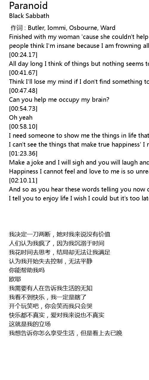 | [00:00.00] | zuò cí : Butler, Iommi, Osbourne, Ward |