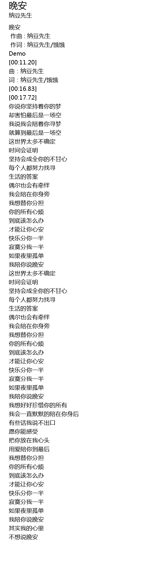 | [00:01.000] | 作词 : 纳豆先生/饿饿 |