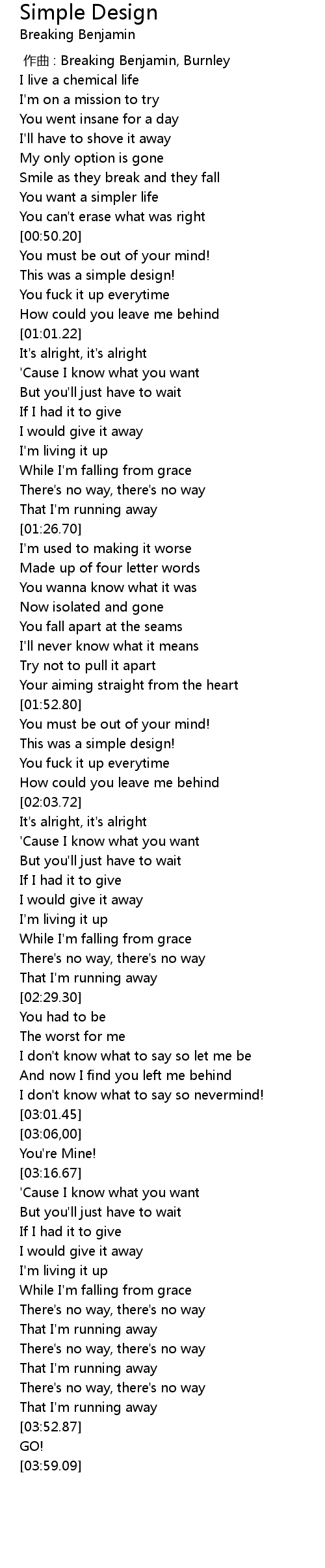 | [00:00.00] | 作曲 : Breaking Benjamin, Burnley |