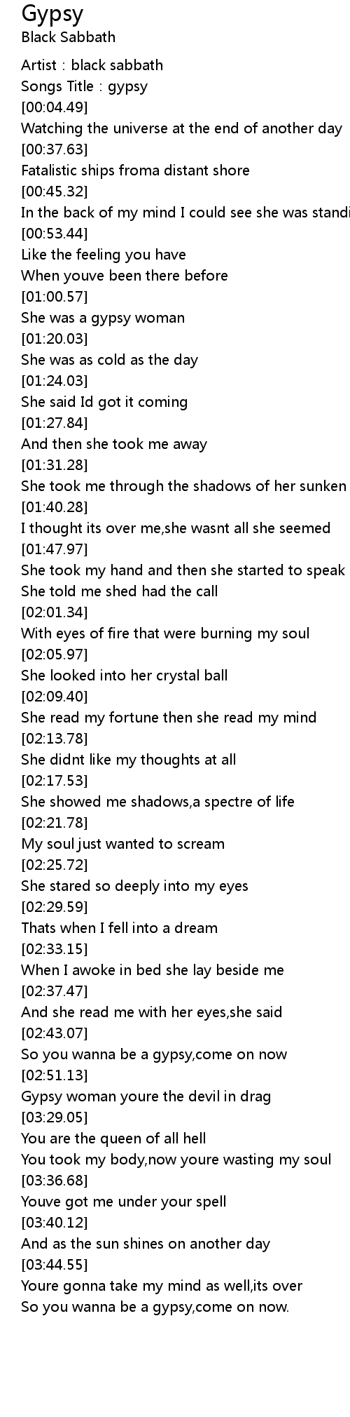 | [02:44.63] | So you wanna be a gypsy, come on now |