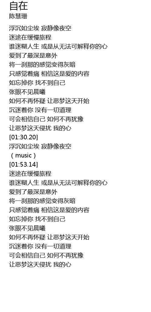 | [01:49.97] | 浮沉如尘埃 寂静像夜空 |