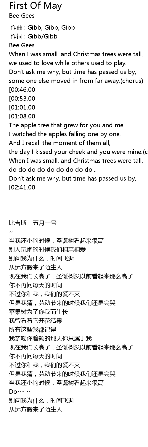 | [00:10.00] | 比吉斯 - 五月一号 |