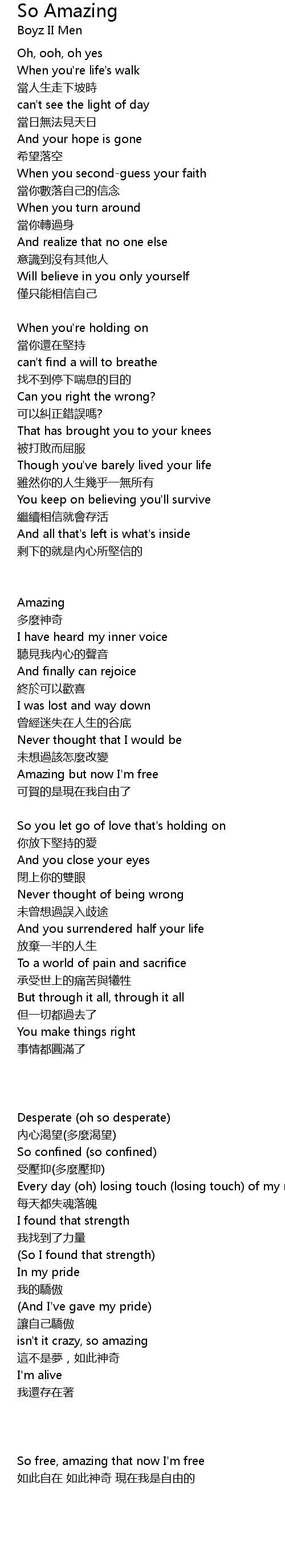 | Amazing but now I' m free | |