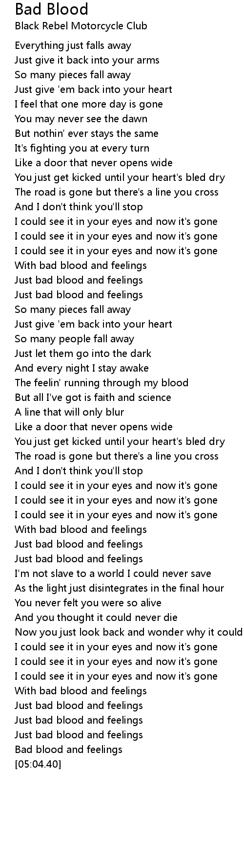 Bad blood and feelings |