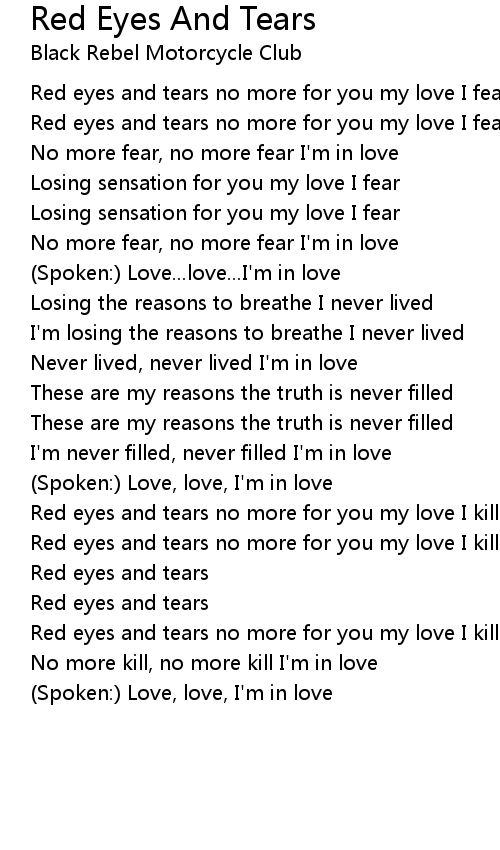 Red eyes and tears no more for you my love I fear |