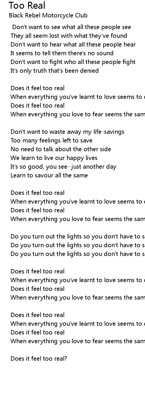 Does it feel too real |