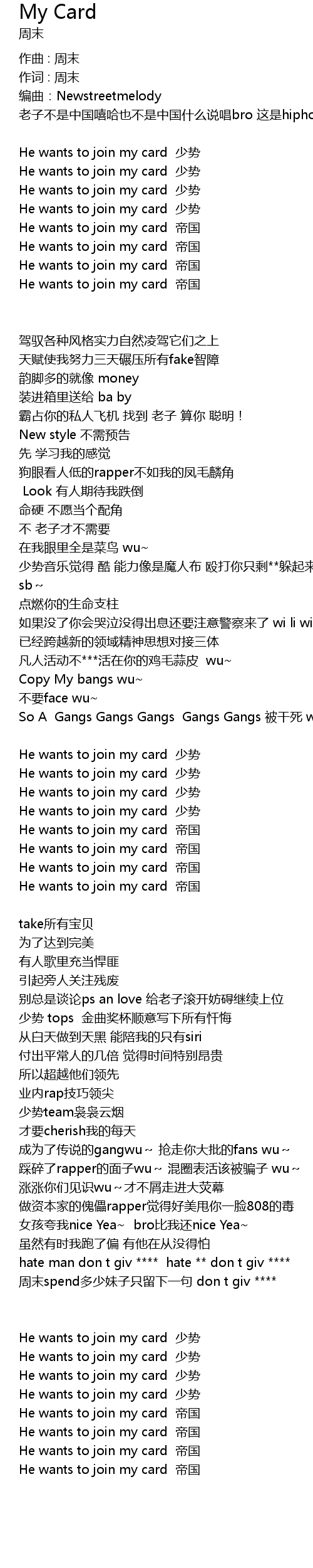 | lao zi bu shi zhong guo xi ha ye bu shi zhong guo shen me shuo chang bro zhe shi hiphop trap king | |