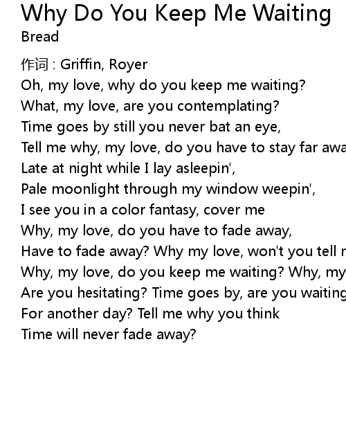 | Oh, my love, why do you keep me waiting? | |