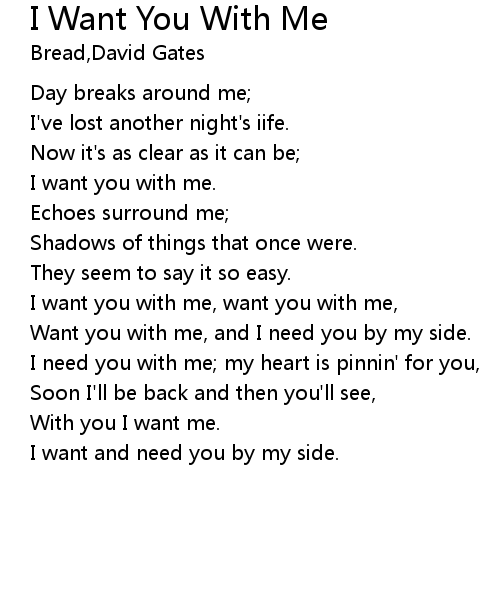 | I want you with me, want you with me, | |