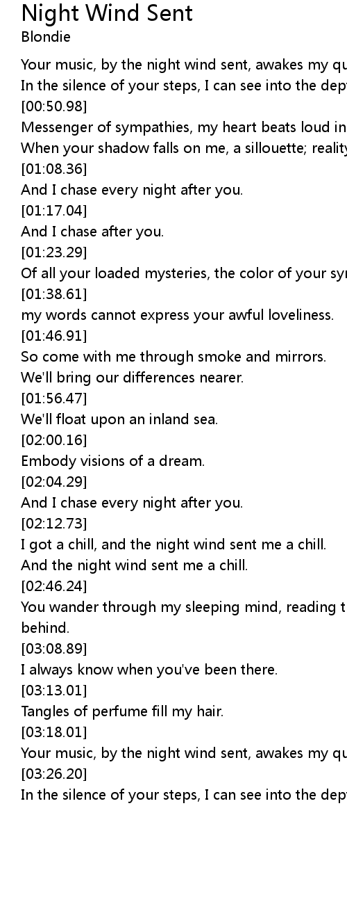 | [02:26.72] | I got a chill, and the night wind sent me a chill. |