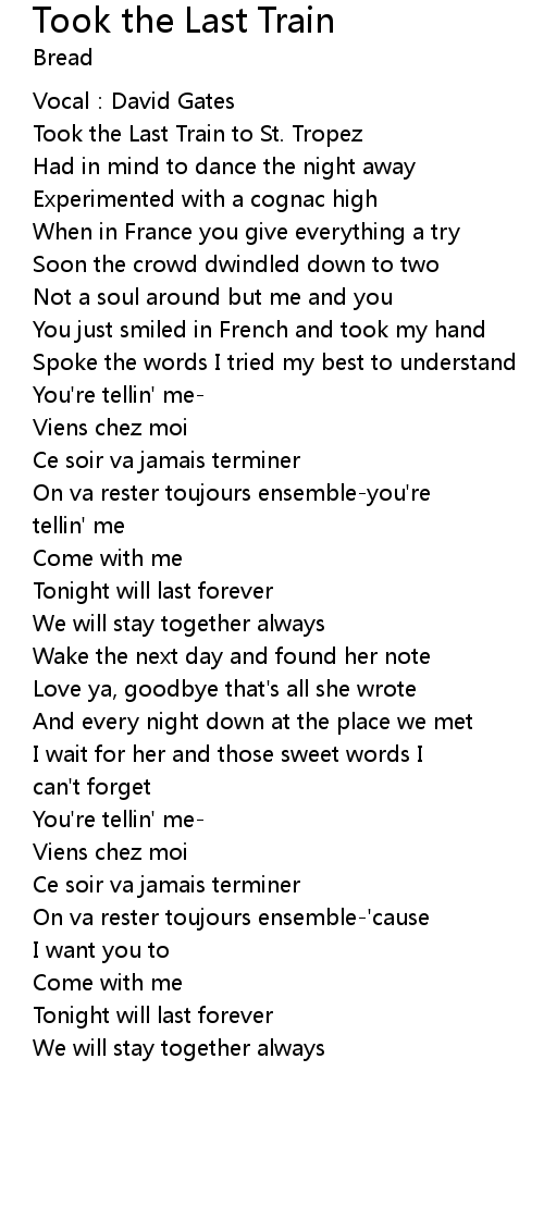 | Took the Last Train to St. Tropez | |