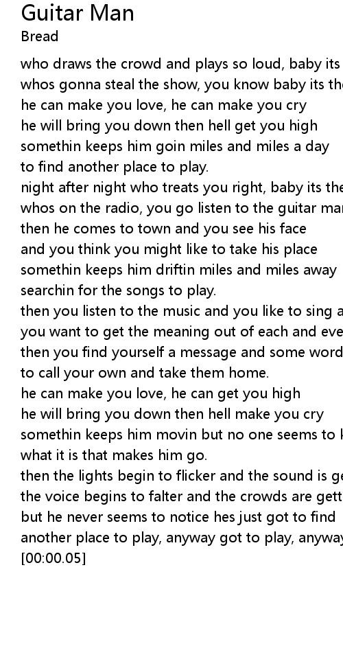 night after night who treats you right, baby its the guitar man |