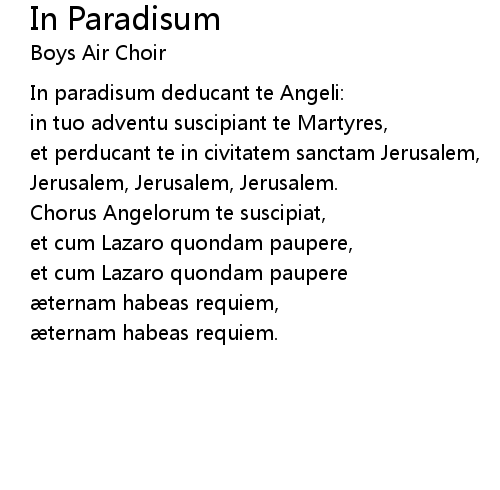 | 歌曲 | In Paradisum |